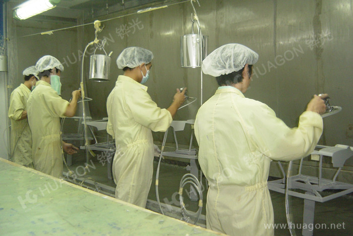 上料-手動靜電除塵-素材預熱-多任務站手動/自動噴涂-靜置-隧道式烘烤-UV光固化-冷卻-下料