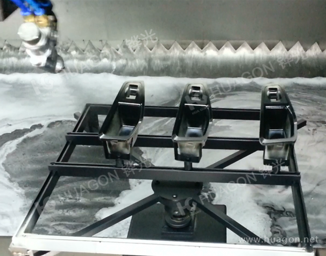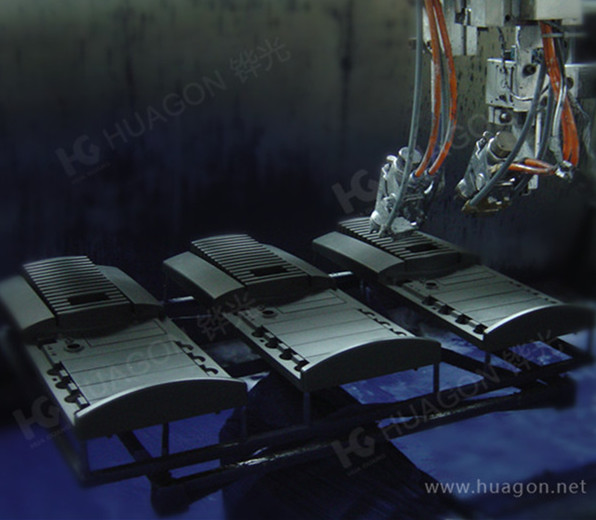 上料-手動靜電除塵-素材預熱-手工放料-自動噴涂-靜置-隧道式烘烤-冷卻-下料